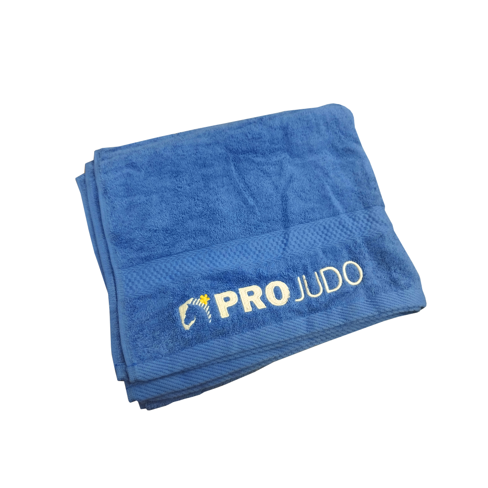 Ručník o rozměrech 68 × 120 cm s vyšitým logem ProJudo a lístečkem na jméno. Příjemný, savý a ideální na trénink i soutěže.